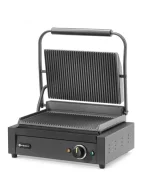 Górną część grilla podnosi się za pomocą uchwytu odpornego na ciepło z możliwością zablokowania jej w dowolnym położeniu dzięki mechanizmowi sprężynowemu.
