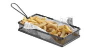 Koszyk miniaturowy do smażonych przekąsek wykończony czarnym, matowym pokryciem.