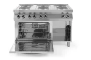 Blat roboczy ze stali nierdzewnej AISI 304 Obudowa boczna ze stali nierdzewnej AISI 430Płyty grzewcze żeliwne: 6x o220 mm po 2,6 kW Szafka z 3 stron zamknięta o wymiarach wew. 410x570(H)470 mm Stalowe...
