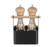 Uchwyt z drewnianą rączką;Zakończony czarną, matową powłoką.