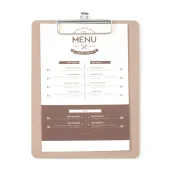 Podkładka pod kartę menu:Wykonana z wytrzymałej płyty MDF z metalowym klipsem;Dostępna w różnych rozmiarach.