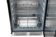 Obudowa, rama drzwi, uchwyt drzwi wykonane ze stali nierdzewnej AISI 304. Przeszklenie drzwi wykonane z 2 warstw hartowanego szkła powlekanego niskoemisyjnego, które zwiększa wydajność energetyczną szafy poprzez blokowanie promieniowania UV oraz przedostawania się ciepła z zewnątrz. Zamek w drzwiach w standardzie. Pojemnik na wodę destylowaną wykonany z tworzywa ABS – wodę destylowaną należy uzupełnić ręcznie. Powiadomienie na ekranie oraz alarm dźwiękowy sygnalizują niską wilgotność poniżej 15% i konieczność uzupełnienia wody. Alarm sygnalizujący drzwi pozostające otwarte przez więcej niż 3,5 minuty – zabezpieczenie przed niekontrolowanym zaburzeniem warunków panujących w komorze. Wbudowana lampa UVC do sterylizacji zapobiega rozwojowi bakterii i gwarantuje bezpieczne środowiska dla mięsa; po otwarciu drzwi szafy w trakcie procesu sezonowania bakterie nie będą miały szansy się rozwinąć. Chłodzenie wymuszone wentylatorem zapewniającym odpowiedni poziom cyrkulacji powietrza. Automatyczne odparowanie wody kondensacyjnej (pary wodnej). Światła LED ulokowane po obu stronach komory oraz na suficie. Zakres temperatury: 1-25?. Regulowany zakres wilgotności: 60-85%. Aktualny poziom wilgotności jest wyświetlany na panelu. Czynnik chłodniczy: R600a. Maks. udźwig drążka do haków: 50 kg. Maks. udźwig na hak: 25 kg