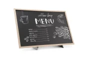 Duża tablica z drewnianą ramą;Z wygodną podstawą.
